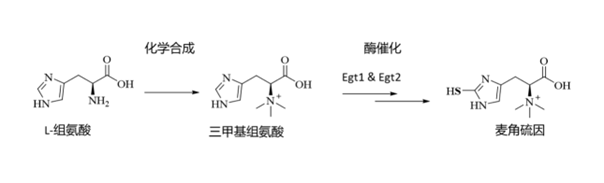 麦角硫因最初从蘑菇中提取,成本非常高。随着合成技术的发展,降低了麦角硫因的制造成本,使其成为大众可消费的保健品。目前主要有三种合成麦角硫因的方法,分别为化学合成、化学合成+酶催化和精密发酵。