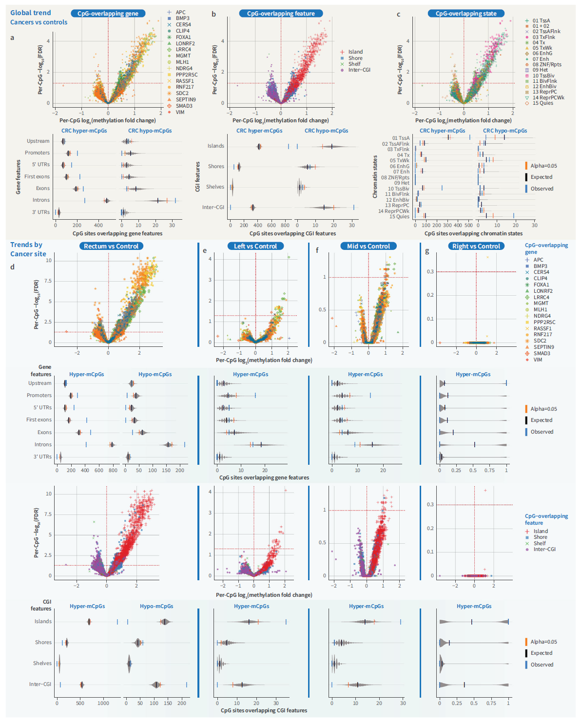 图4:结直肠癌中DNA甲基化升高区域在病变部位和临床类别中的高甲基化梯度