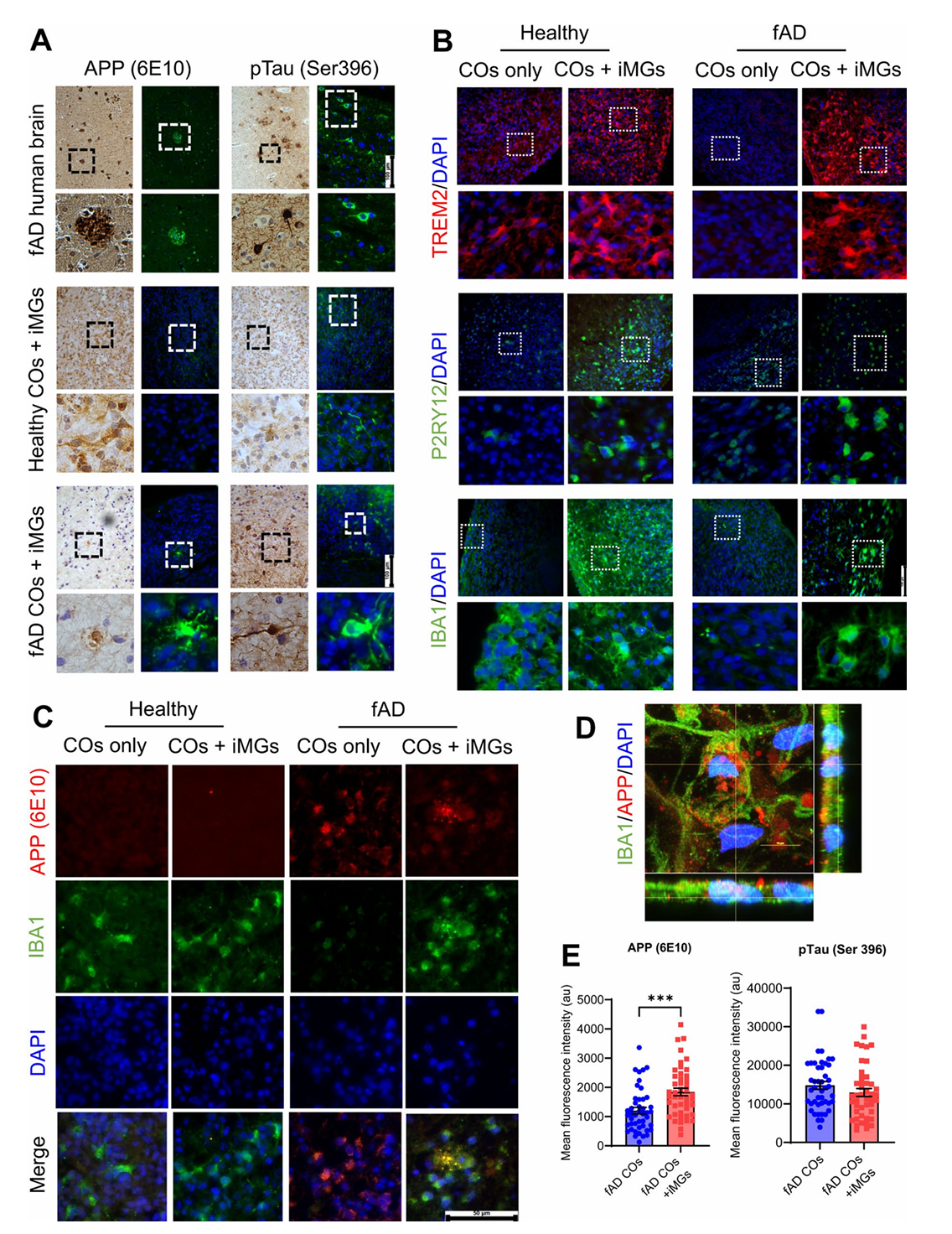家里有阿尔茨海默病患者的人都知道,看着他们慢慢记不起熟悉的名字、找不到常去的路,是件多揪心的事。这种疾病不仅偷走患者的记忆,更让全球无数家庭陷入困境,它也是目前导致痴呆的最主要原因。随着病情进展,患者大脑会出现淀粉样蛋白和tau蛋白堆积、神经元死亡以及神经炎症,最终引发严重的认知障碍。其中,小胶质细胞作为中枢神经系统的“守护者”,通过与神经细胞、蛋白聚集体互动调控病理进程,可传统研究模型始终难以充分模拟这种复杂的相互作用——动物模型无法精准复刻人类中枢神经系统的生理特征,三维细胞培养模型又常缺少小胶质细胞这类关键免疫细胞。