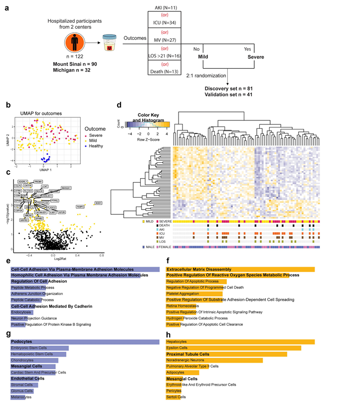 图1. 尿液蛋白质组学揭示重症与轻症新冠病毒感染患者间的差异丰度蛋白
