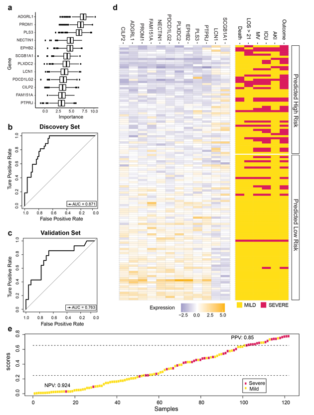 图2. 交叉验证的随机森林模型可可靠预测新冠病毒感染严重程度