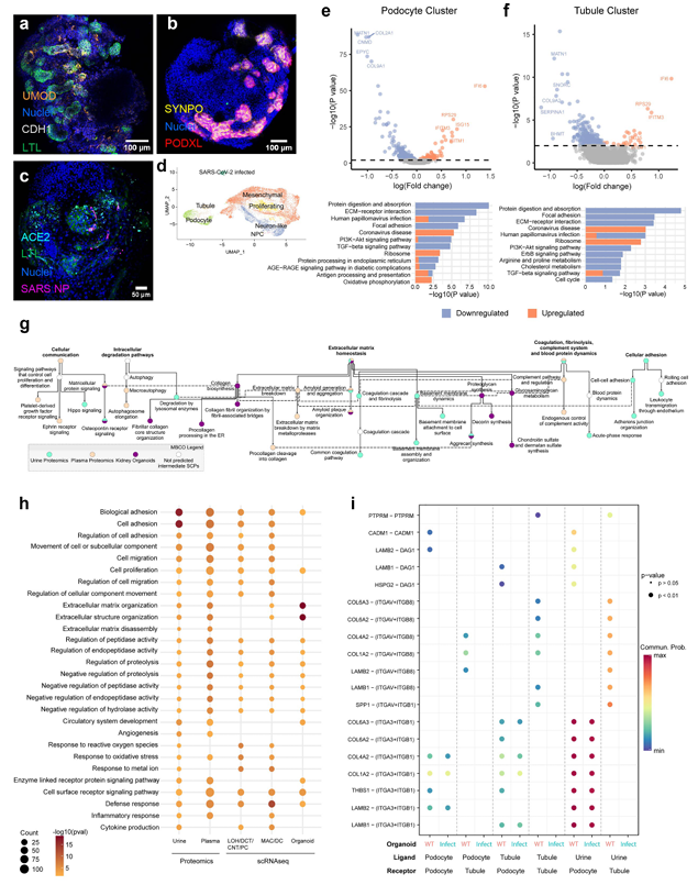 图4. 感染新冠病毒的肾类器官重现临床数据集观察到的肾损伤机制