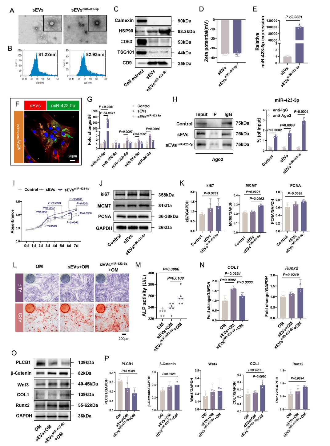 图4 富集miR-423-5p的工程化小细胞外囊泡增强了成骨分化潜力