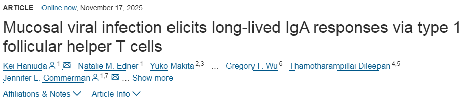 Kei Haniuda et al, Mucosal viral infection elicits long-lived IgA responses via type 1 follicular helper T cells, Cell (2025). DOI: 10.1016/j.cell.2025.07.022.