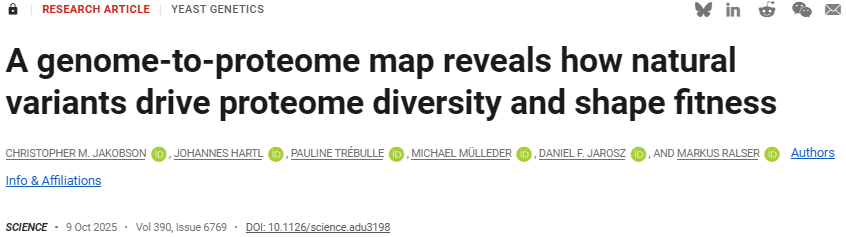 Christopher M. Jakobson et al, A genome-to-proteome map reveals how natural variants drive proteome diversity and shape fitness, Science (2025). DOI: 10.1126/science.adu3198.