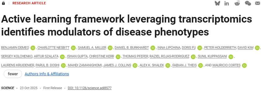 Benjamin DeMeo et al, Active learning framework leveraging transcriptomics identifies modulators of disease phenotypes, Science (2025). DOI: 10.1126/science.adi8577.