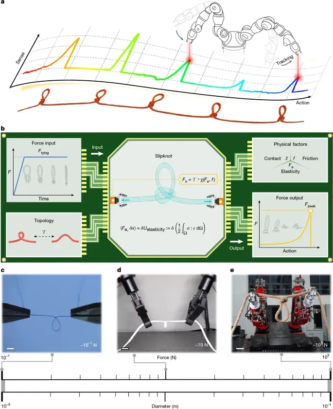 这项工作从一个看似普通的滑结出发,将其发展为一种可量化、可编程、跨场景的机械智能传输机制。它不依赖电子元件,不需要复杂硬件,成本极低却能提供高度精确的力控制。滑结缝线让手术更安全、更一致,也为经验不足的医生提供了即时的力校准工具;在机器人领域,slipknot 则成为可嵌入可视系统、驱动系统的天然“力限位单元”,将自动化从“看得见”推进到“摸得准”。未来,这种基于结的机械智能还可能被推广到软体机器人、极端环境作业、教育培训乃至可穿戴设备中。甚至在纳米尺度,DNA 的滑结行为也预示着跨维度的应用潜力。一个小小的结,正在悄然开启机械信息传递的新纪元。