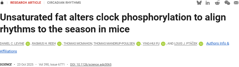 Daniel C. Levine et al, Unsaturated fat alters clock phosphorylation to align rhythms to the season in mice, Science (2025). DOI: 10.1126/science.adp3065.