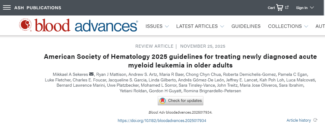 Mikkael A Sekeres,Ryan J Mattison,Andrew S. Artz, et al. American Society of Hematology 2025 guidelines for treating newly diagnosed acute myeloid leukemia in older adults, Blood Advances (2025). DOI:10.1182/bloodadvances.2025017934