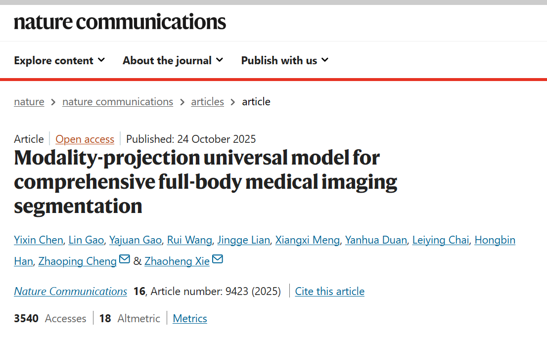 近日,一项发表在Nat Commun的研究给出了答案——研发的模态投影通用模型(MPUM),为全身体医学影像的综合分析与临床应用打开了新大门。