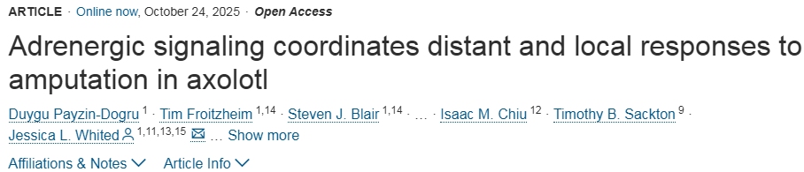 Duygu Payzin-Dogru et al, Adrenergic signaling coordinates distant and local responses to amputation in axolotl, Cell (2025). DOI: 10.1016/j.cell.2025.09.025.