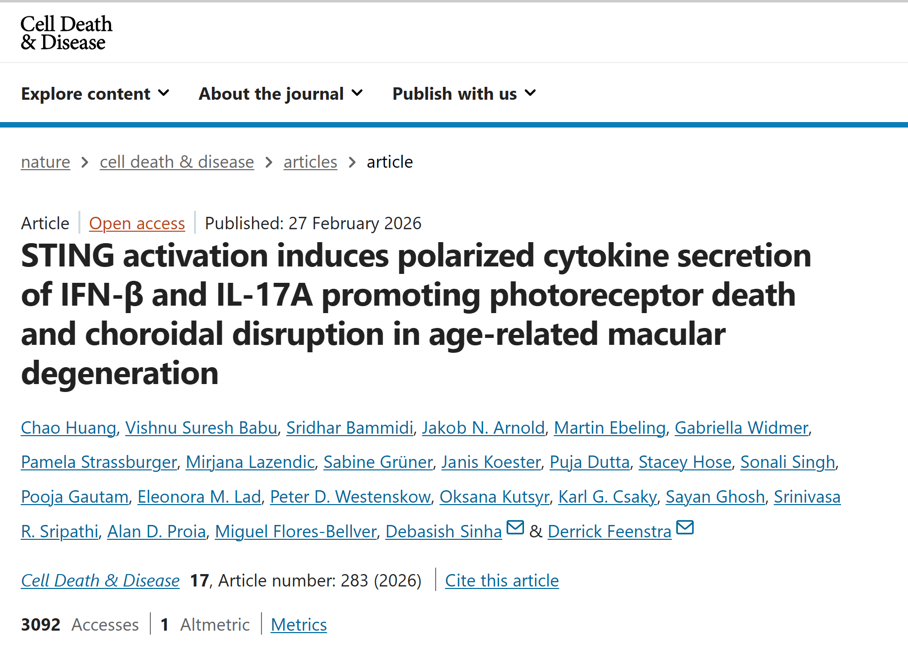 STING通路“一石二鸟”!Cell Death Dis揭示AMD中极化炎症因子如何同时摧毁光感受器与脉络膜