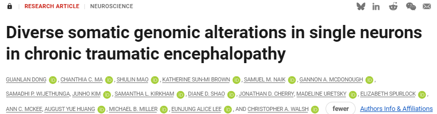 Guanlan Dong et al, Diverse somatic genomic alterations in single neurons in chronic traumatic encephalopathy, Science (2025). DOI: 10.1126/science.adu1351.