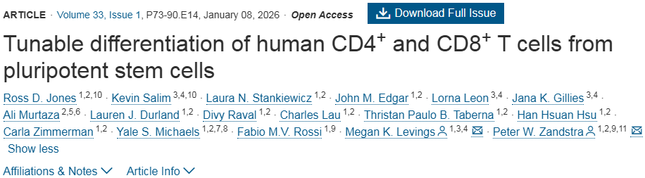 Ross D. Jones et al, Tunable differentiation of human CD4+ and CD8+ T cells from pluripotent stem cells, Cell Stem Cell (2026). DOI: 10.1016/j.stem.2025.12.010.