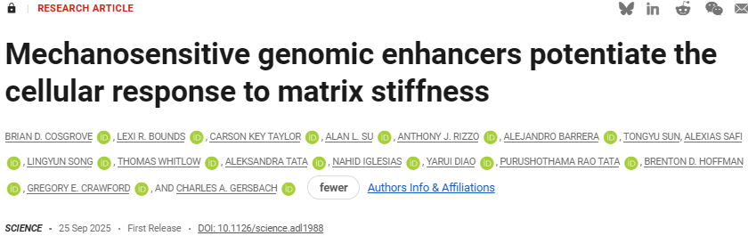 Brian D. Cosgrove et al, Mechanosensitive genomic enhancers potentiate the cellular response to matrix stiffness, Science (2025). DOI: 10.1126/science.adl1988.