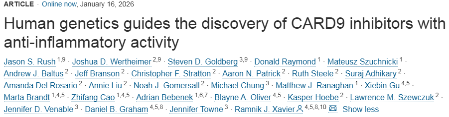 Jason S. Rush et al, Human genetics guides the discovery of CARD9 inhibitors with anti-inflammatory activity, Cell (2026). DOI: 10.1016/j.cell.2025.12.013.