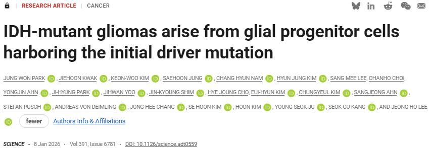 Jung Won Park et al, IDH-mutant gliomas arise from glial progenitor cells harboring the initial driver mutation, Science (2026). DOI: 10.1126/science.adt0559.