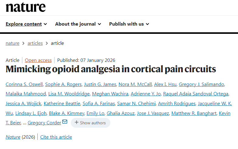 Oswell, C.S., Rogers, S.A., James, J.G. et al. Mimicking opioid analgesia in cortical pain circuits. Nature (2026). doi:10.1038/s41586-025-09908-w