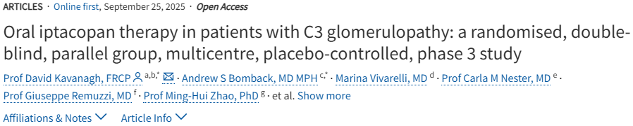 David Kavanagh et al, Oral iptacopan therapy in patients with C3 glomerulopathy: a randomised, double-blind, parallel group, multicentre, placebo-controlled, phase 3 study. The Lancet. DOI: 10.1016/S0140-6736(25)01148-1.