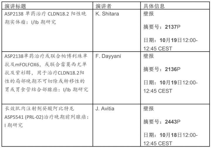 安斯泰来在2025ESMO大会期间的展示如下: