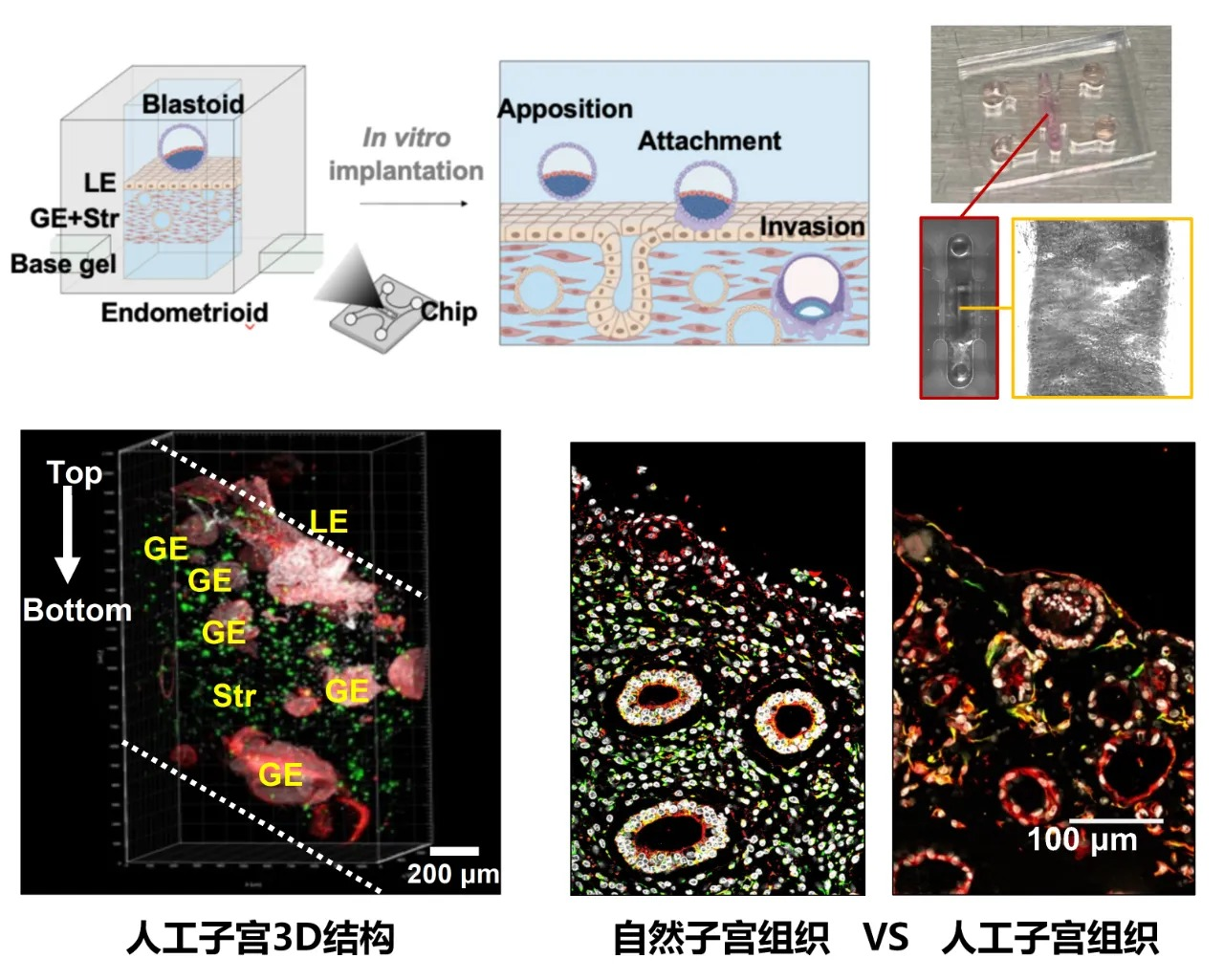 该研究基于微流控芯片技术建立了 3D 人类胚胎植入模型(人工/自然囊胚植入人工子宫),实现了首次在实验室精准复刻人类胚胎植入过程,为研究人类胚胎植入的细胞和分子机制提供重要模型。