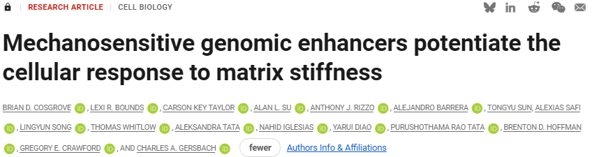 Brian D. Cosgrove et al, Mechanosensitive genomic enhancers potentiate the cellular response to matrix stiffness, Science (2025). DOI:10.1126/science.adl1988.
