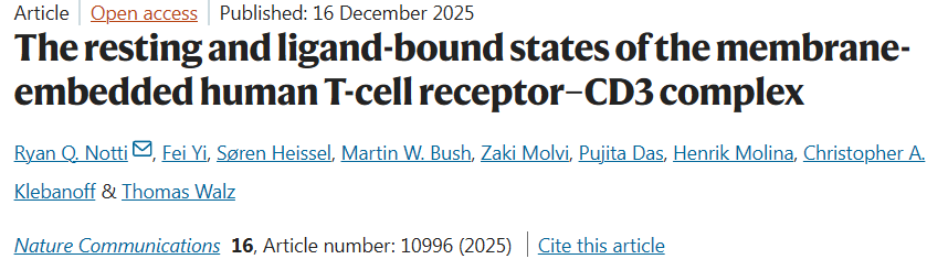 Ryan Q. Notti et al, The resting and ligand-bound states of the membrane-embedded human T-cell receptor–CD3 complex, Nature Communications (2025). DOI:10.1038/s41467-025-66939-7.