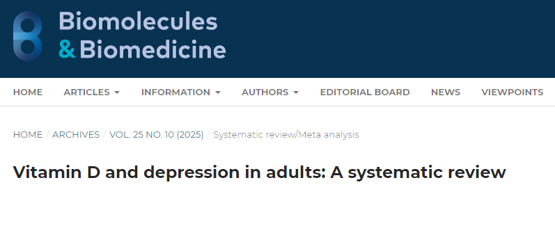 Vlad Dionisie,Mihnea Alexandru Gaman,Cristina Anghele,et al. Vitamin D and depression in adults: A systematic review. Biomolecules and Biomedicine (2025).doi:10.17305/bb.2025.12331