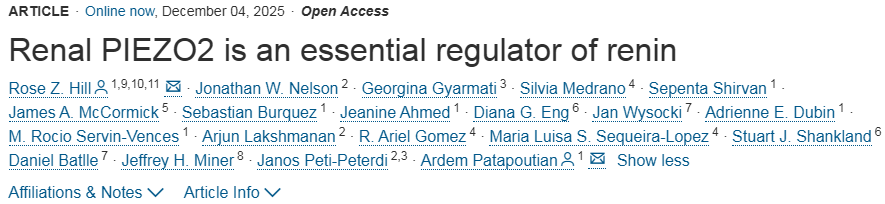 Rose Z. Hill et al, Renal PIEZO2 is an essential regulator of renin, Cell (2025). DOI: 10.1016/j.cell.2025.11.013.