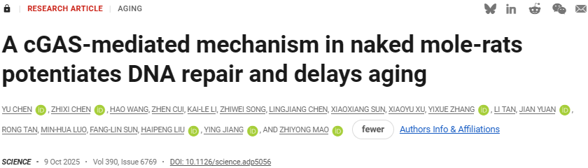 Yu Chen et al, A cGAS-mediated mechanism in naked mole-rats potentiates DNA repair and delays aging, Science (2025). DOI: 10.1126/science.adp5056.