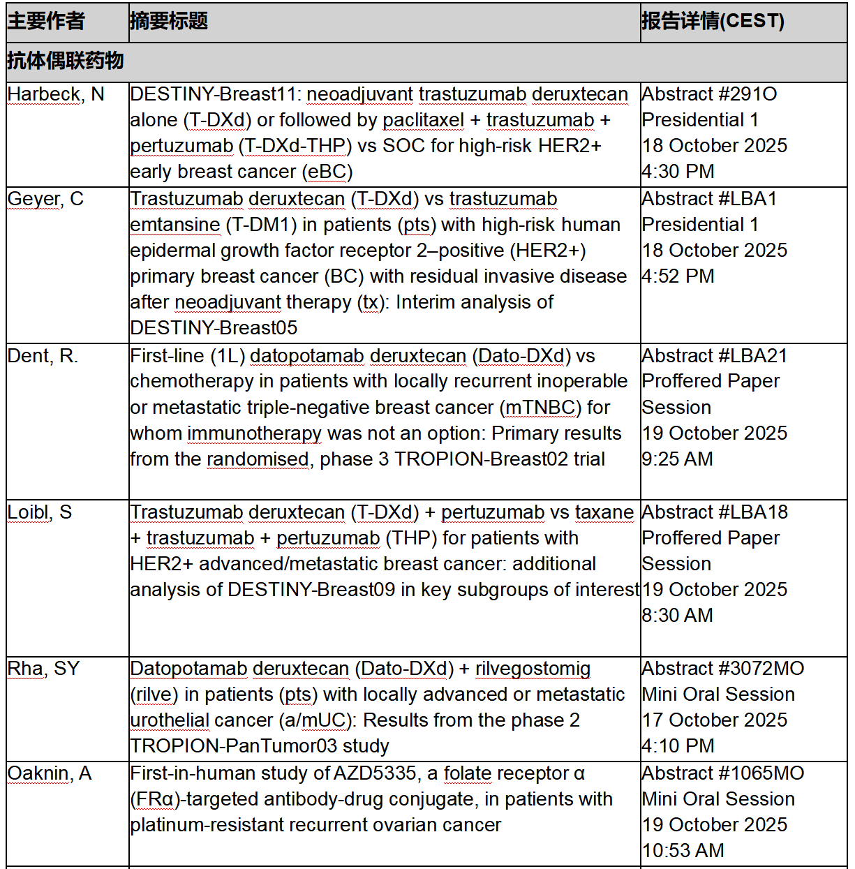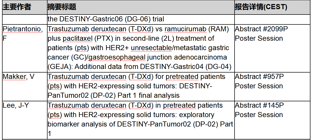 • DESTINY-Breast05:评估德曲妥珠单抗用于HER2阳性早期乳腺癌(新辅助治疗后存在残留浸润病灶并具有高复发风险)的III期临床研究(主席研讨会1,摘要#LBA1)。