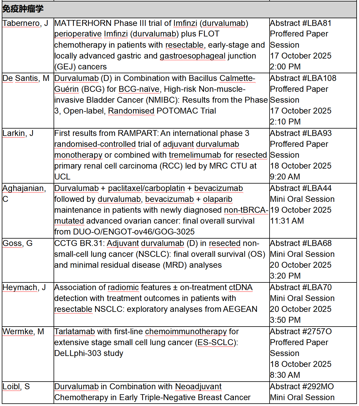 阿斯利康在2025年ESMO年会期间的重要演讲1