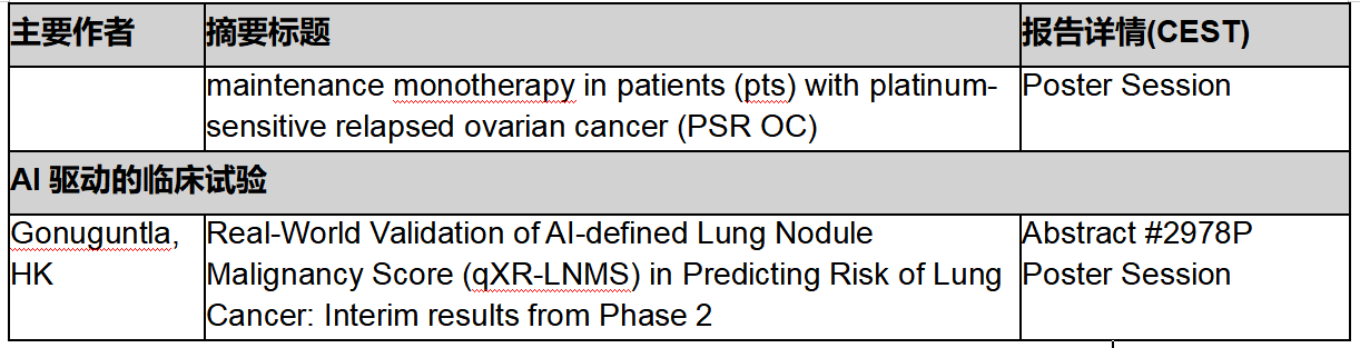 • FLAURA2:在奥希替尼合化疗治疗晚期EGFR突变NSCLC患者的FLAURA2 III期临床研究中存在不良预后因素患者的探索性OS分析(优选论文摘要#LBA77)。