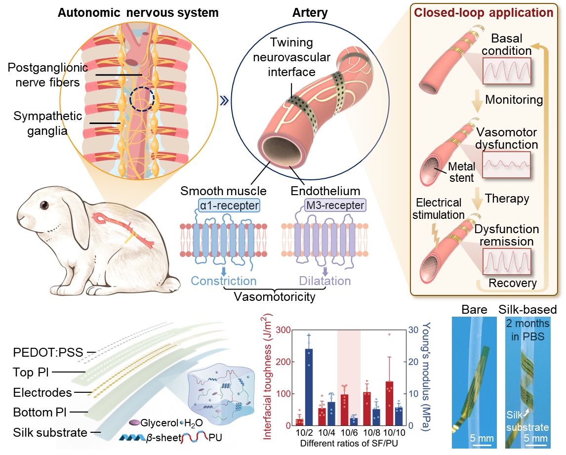 柔性神经接口实现对血管失功的动态监测与闭环调控