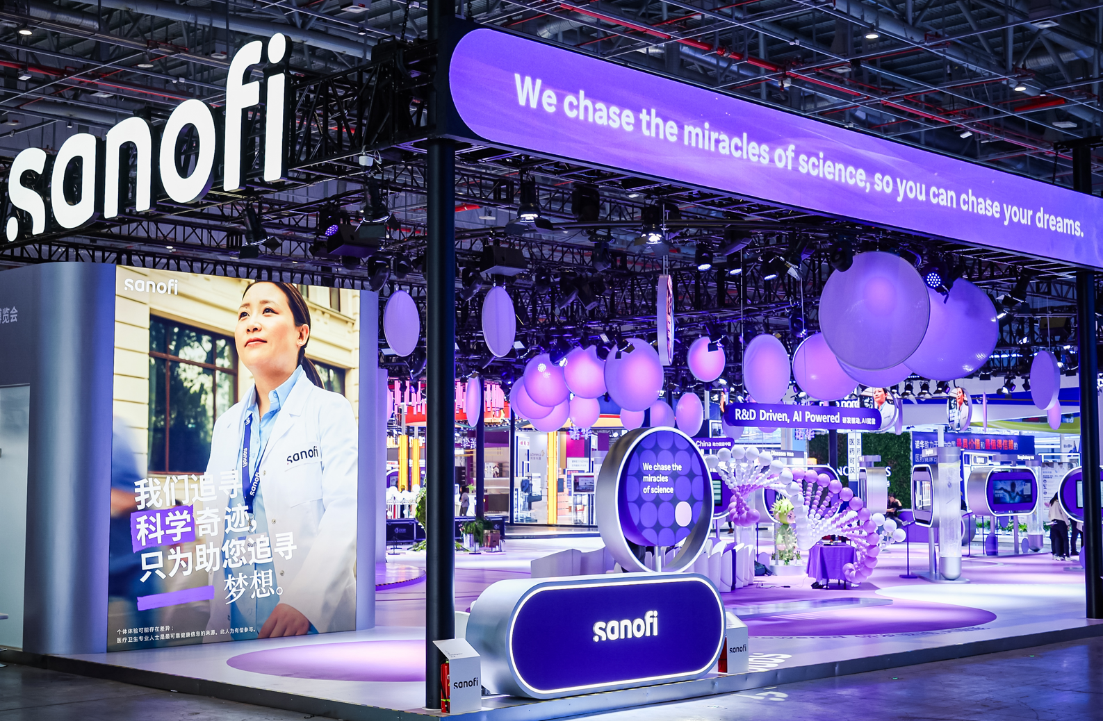 秉持“追寻科学奇迹,焕发生命光彩”的企业使命,今年10月,赛诺菲在全球发起了以“追寻奇迹,筑梦为你”为主题的品牌声誉升级项目。此次进博会,赛诺菲紧扣这一主题,布局“研发驱动,AI赋能”、“追寻科学奇迹”、“助力健康中国”三大展区,全方位呈现赛诺菲在引领科学创新、满足健康未尽之需,以及深化中国布局等方面的丰硕成果与卓越成就。
