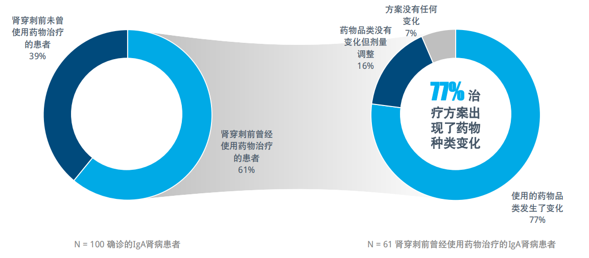 图:IgA 肾病患者在接受肾穿刺前后治疗方案的变化