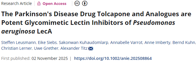 Steffen Leusmann et al, The Parkinson's Disease Drug Tolcapone and Analogues are Potent Glycomimetic Lectin Inhibitors ofPseudomonas aeruginosa LecA, Angewandte Chemie International Edition (2025). DOI: 10.1002/anie.202508864.