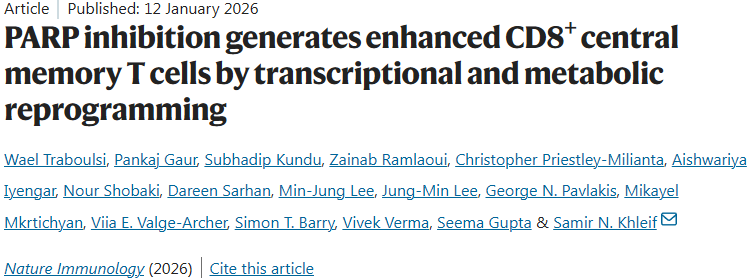 Wael Traboulsi et al, PARP inhibition generates enhanced CD8+ central memory T cells by transcriptional and metabolic reprogramming, Nature Immunology (2026). DOI: 10.1038/s41590-025-02383-5.