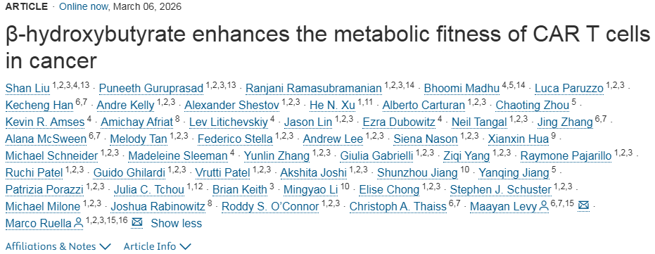 Shan Liu et al, β-Hydroxybutyrate Enhances the Metabolic Fitness of CAR T Cells in Cancer, Cell (2026). DOI: 10.1016/j.cell.2026.02.004.