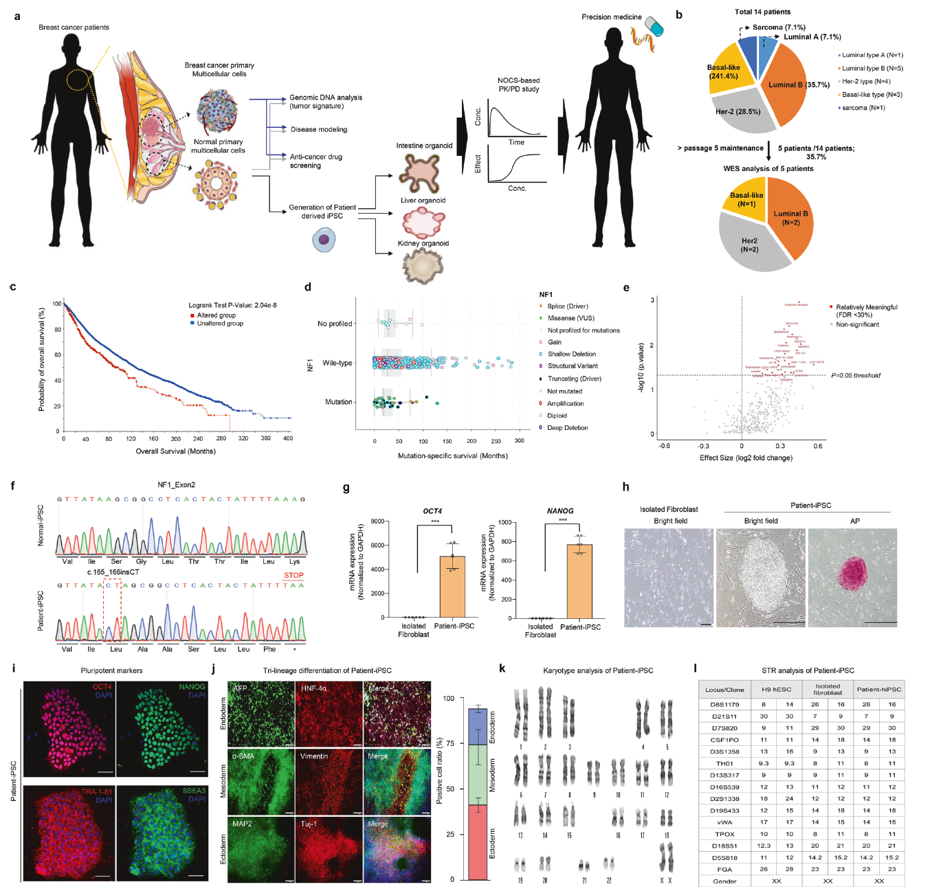 图1 具有NF1突变的乳腺癌患者1来源的诱导多能干细胞(iPSCs)的生成