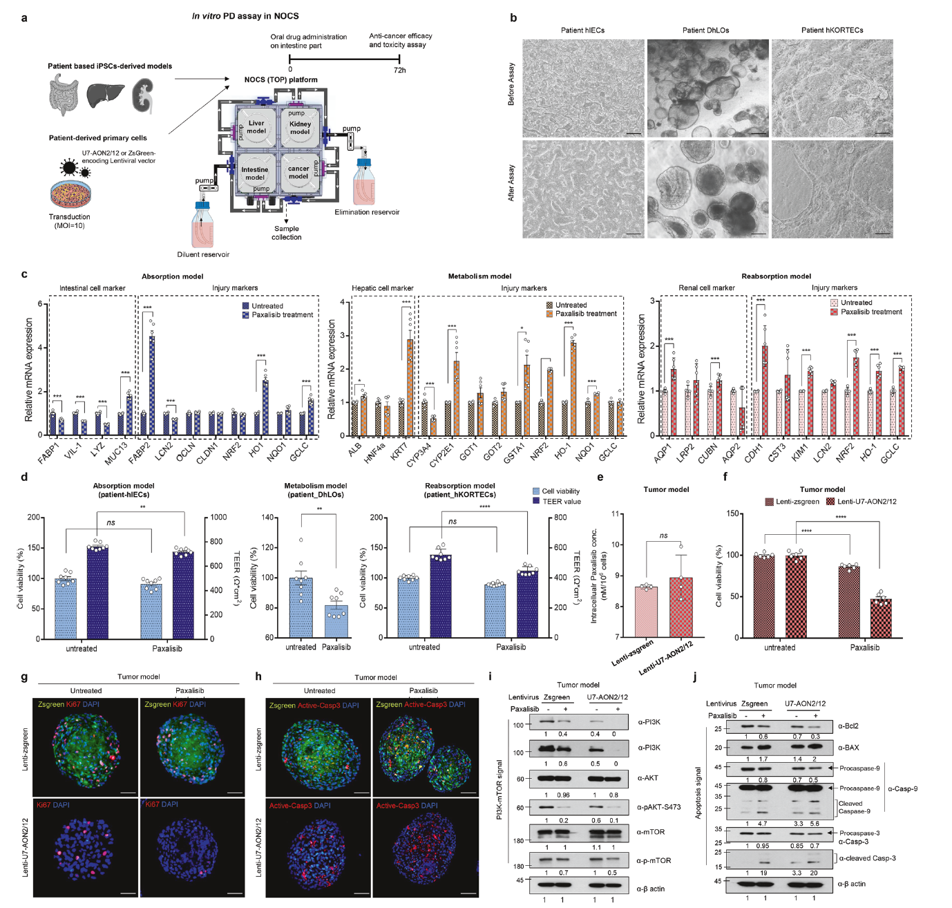 本研究利用患者来源的诱导多能干细胞构建肠、肝、肾类器官及肿瘤模型,搭建多器官培养系统,筛选出Paxalisib,并证实其与外显子跳跃疗法联用可协同抑制NF1突变乳腺癌。
