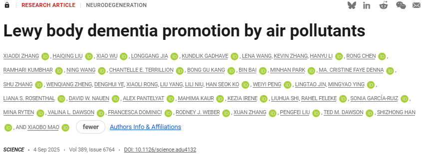 Xiaodi Zhang et al, Lewy body dementia promotion by air pollutants, Science (2025). DOI: 10.1126/science.adu4132.