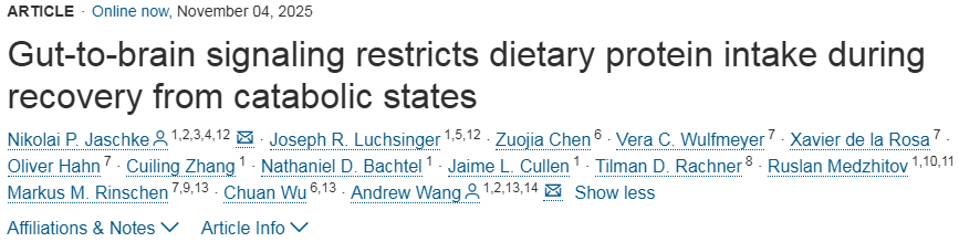 Nikolai P. Jaschke et al, Gut-to-brain signaling restricts dietary protein intake during recovery from catabolic states, Cell (2025). DOI: 10.1016/j.cell.2025.10.005.