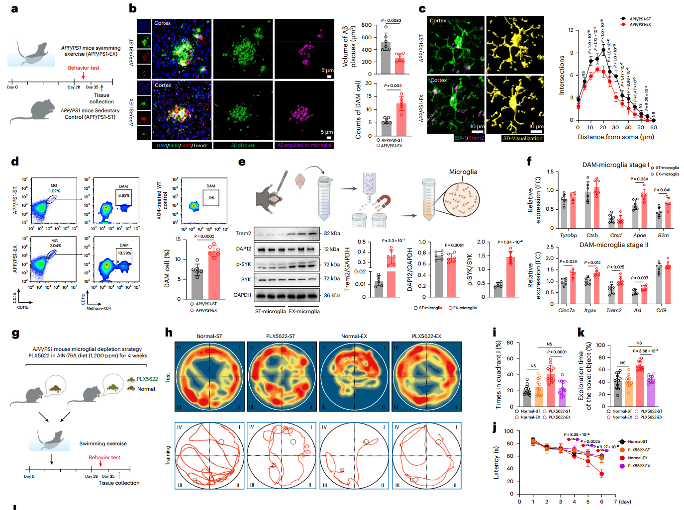 运动通过激活小胶质细胞改善APP/PS1小鼠的认知功能(图源自Nature Aging )