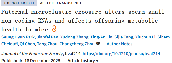 警惕“父系遗传”!J Endocr Soc:微塑料污染改变精子 RNA,后代代谢风险性别特异飙升
