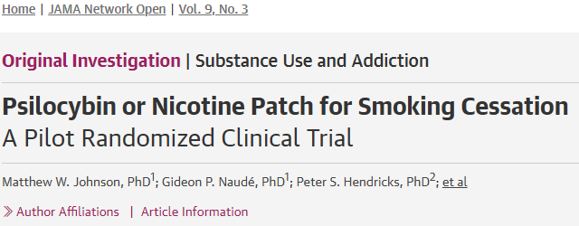 Matthew W. Johnson et al, Psilocybin or Nicotine Patch for Smoking Cessation, JAMA Network Open (2026). DOI: 10.1001/jamanetworkopen.2026.0972.