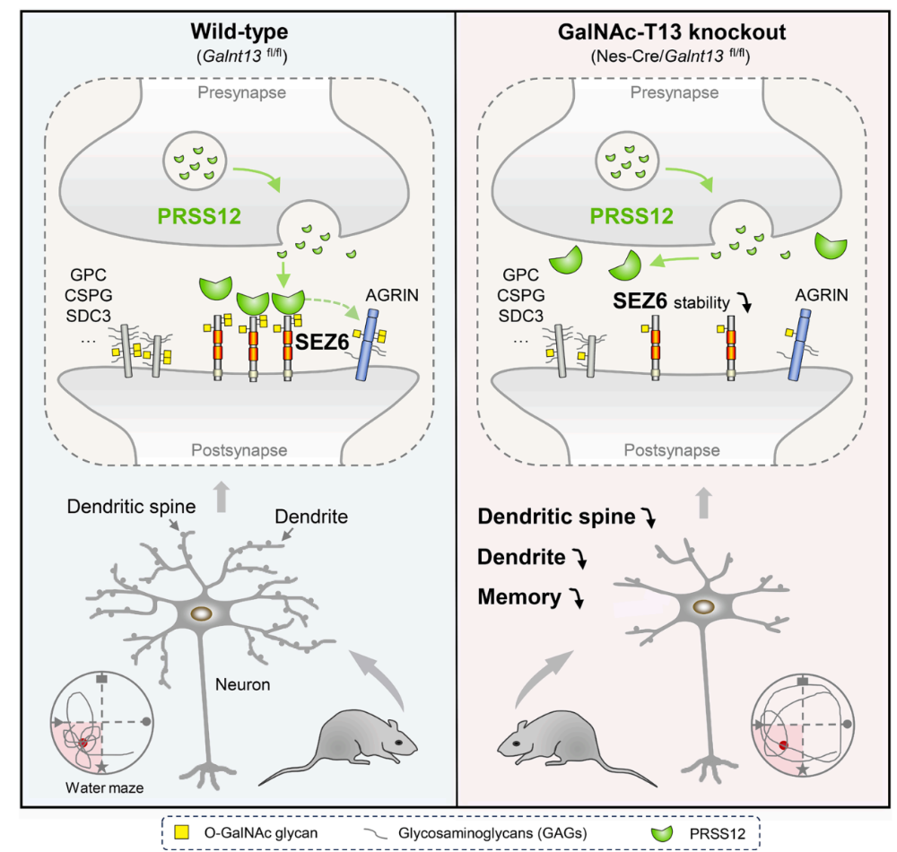 PNAS:大脑中的“糖”如何固化记忆?上海交通大学张延团队揭示糖基转移酶GalNAc-T13通过修饰癫痫蛋白6,维持神经突结构与记忆巩固