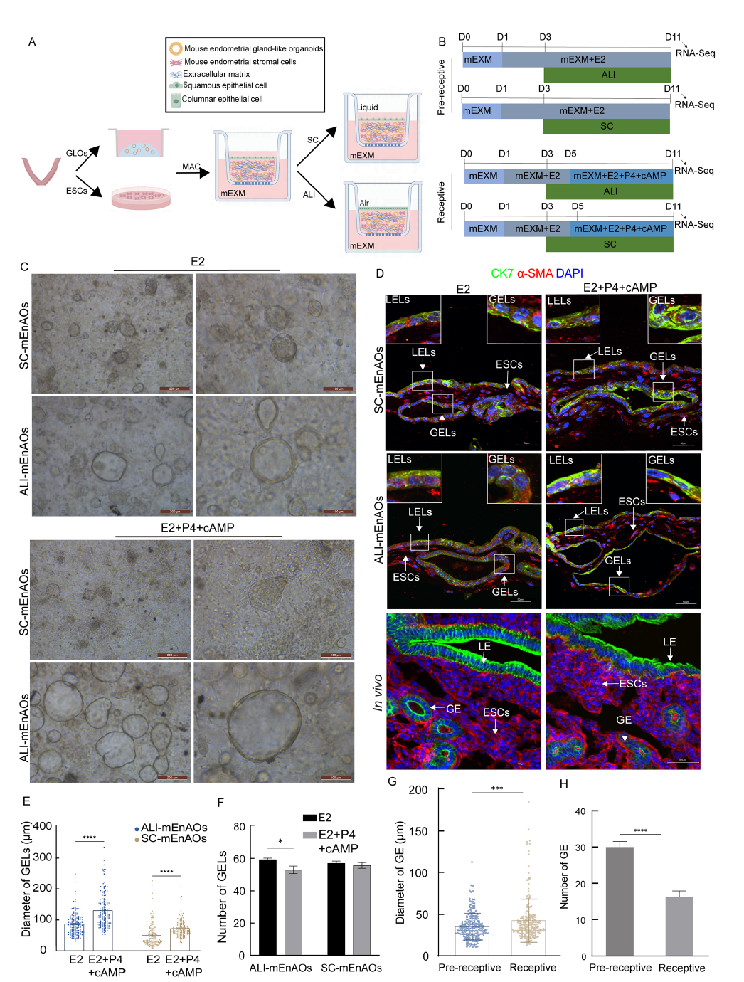 本研究优化培养体系后,用气液界面共培养小鼠子宫内膜腺体样类器官与基质细胞,培育出含腔上皮样结构的组装体,还还原了子宫内膜在体内准备接受胚胎的关键特征,为生殖研究提供实用模型。