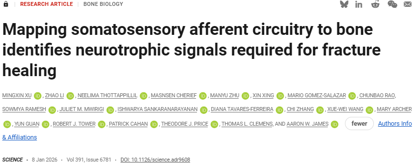 Mingxin Xu et al, Mapping somatosensory afferent circuitry to bone identifies neurotrophic signals required for fracture healing, Science (2026). DOI: 10.1126/science.adr9608.