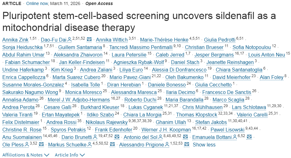 Annika Zink et al, Pluripotent stem cell-based screening uncovers sildenafil as a mitochondrial disease therapy, Cell (2026). DOI: 10.1016/j.cell.2026.02.008.